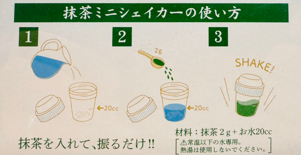 お水でシェイクするだけで簡単に作れ、抹茶ラテや抹茶アイス、さらには抹茶ビールなど色々な形で抹茶を楽しめます。