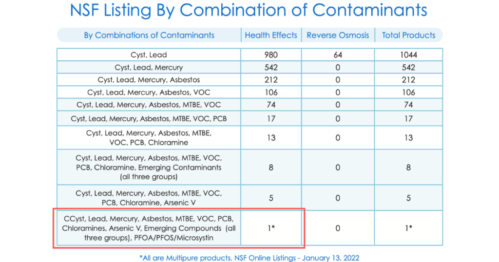 除去項目数の多い順に浄水器ランキングを確認したい場合には、Combination of Contaminantsの表を参照しましょう。