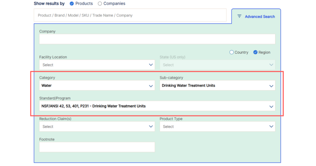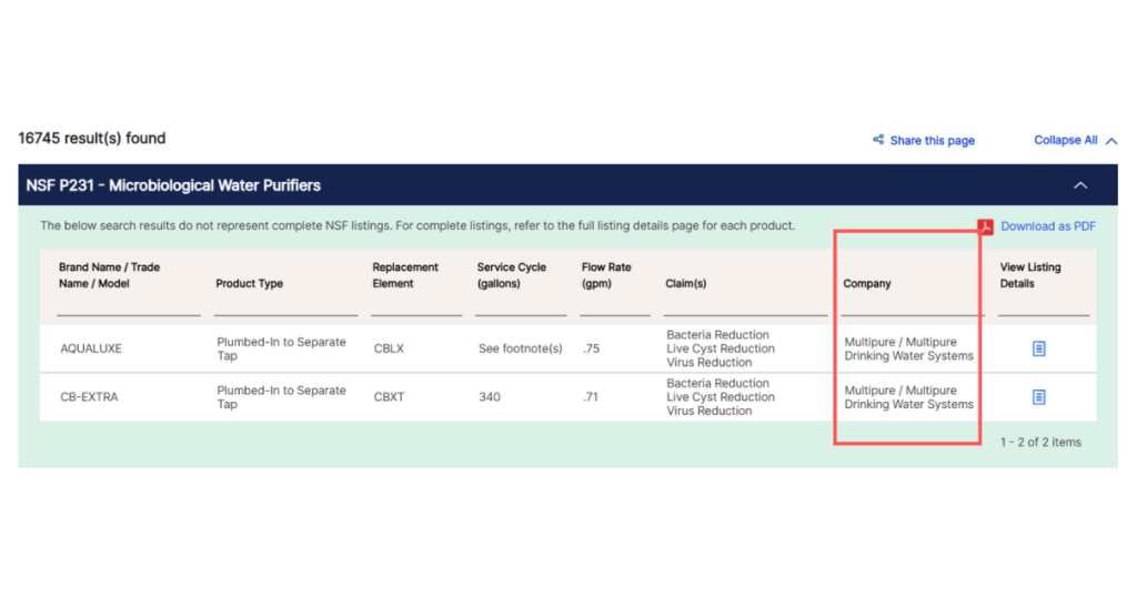 NSF認証を受けた製品は、どなた様でもこちらから検索することが可能です。