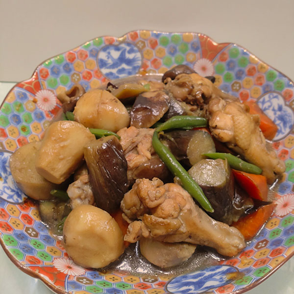⑤器に④のそうめんを入れて上に青じそとねぎと油揚げと梅干しとしょうがを天盛り、周りから①のつゆをかけます。