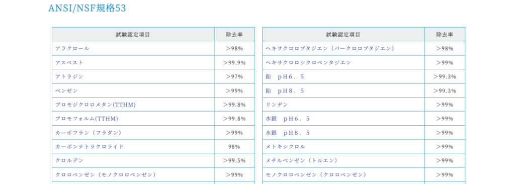 NSFに認証された浄水器は、世界中に約1万2,000種類ありますが、そのトップレベルの浄水性能を持つことが証明されています。