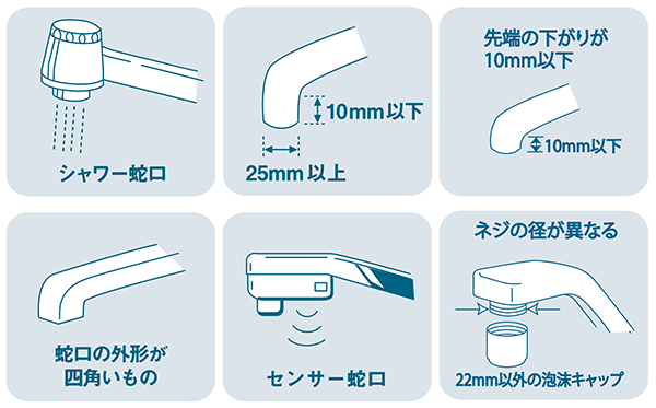 分岐金具は水栓メーカーや品番によって適合する金具が異なります。蛇口のメーカー名、品番をご確認ください。